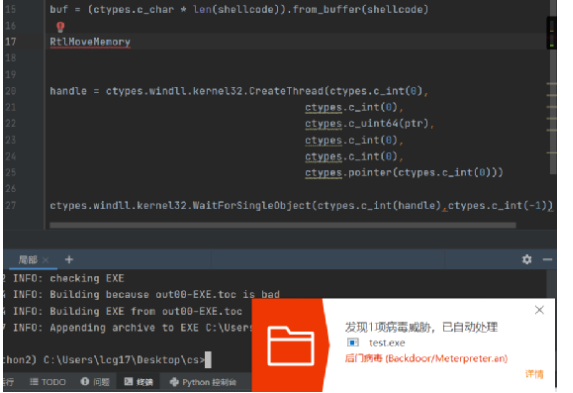 生成exe文件也可以用py2exe打包,因为pyinstaller很多特征也被标记恶意了。。。。