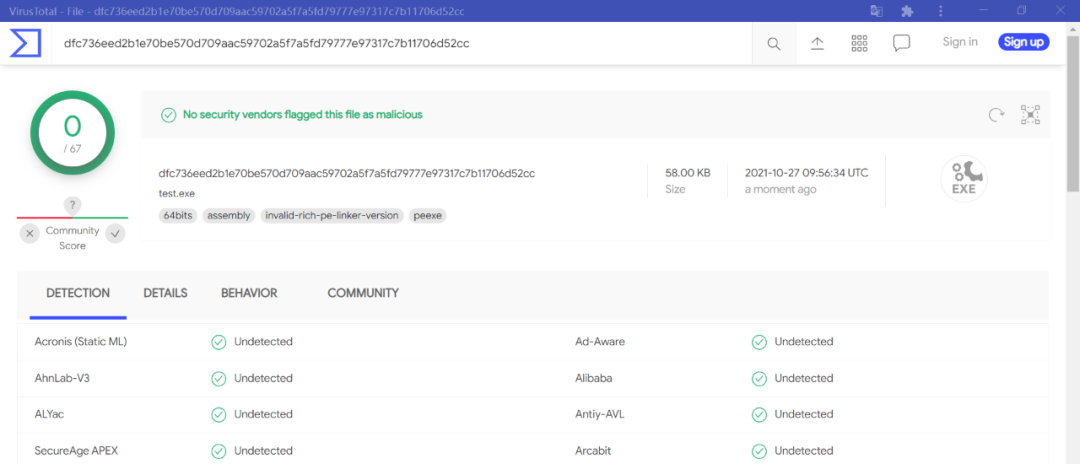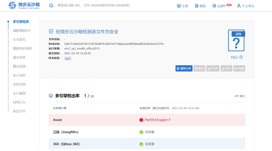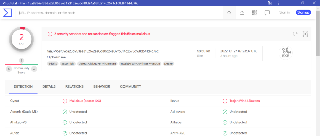 并且没有访问ip,读取文件的行为,就算放进沙箱检测,沙箱内的剪切板也访问不到shellcode。