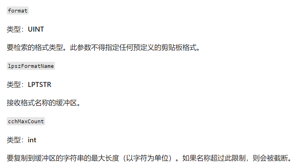 GetClipboardFormatNameW(name, (LPWSTR)men, sizeof sh3llc0de);