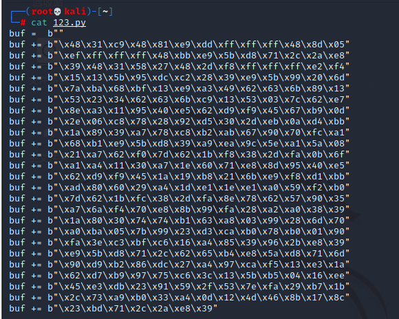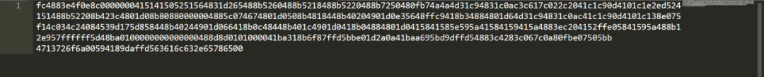 这里我将shellcode转为了16进制的文本形式(就是bin文件打开然后替换空格和回车)