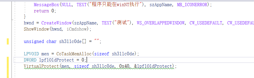 我们需要用VirtualAlloc函数来申请内存,返回类型必须和系统位数相同