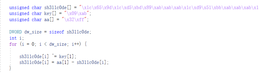 sh3llc0de[i] = aa[1] - sh3llc0de[i];