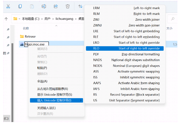 具体反转字符怎么用去百度,RLO是将强字符从右向左读取