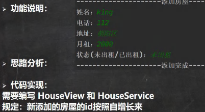 * 3. 调用HouseService完成对房屋信息的各种操作