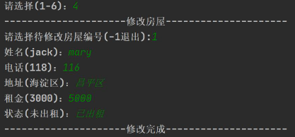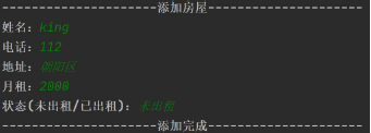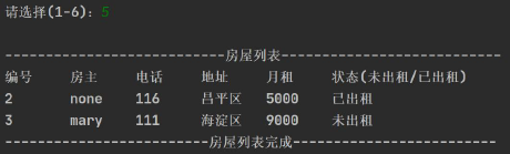 //编号 房主 电话 地址 月租 状态(未出租/已出租)