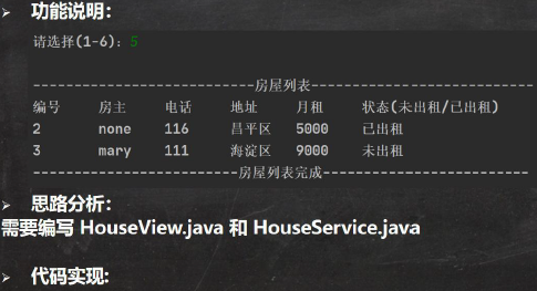 思路分析: 在HouseView.java 中,编写一个方法mainMenu,显示菜单.