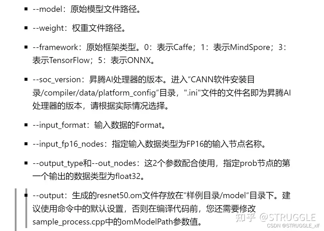 将ResNet-50原始模型转换为适配昇腾AI处理器的离线模型(*.om文件) 切换到样例目录,执行: