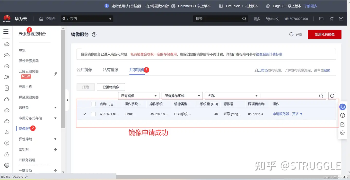 有了华为云账号和项目ID之后,就可以填以下链接申请镜像: 镜像申请 申请好了镜像之后,可以填以下链接,申请代金券: 代金券申请 如果在以下页面看到代金券和镜像发放,就可以创建云服务器了: