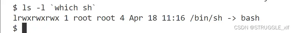 要注意这里的但引号是英文输入法下的Tab键上面的引号,输入其他的可能会报错,得到/bin/sh - > bash 说明正确。