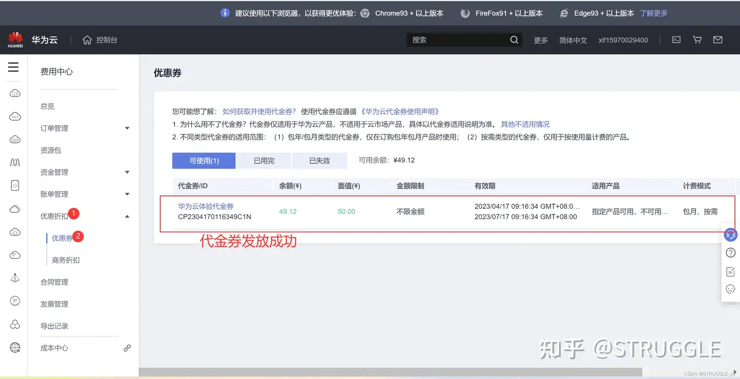 使用代金券购买ECS: