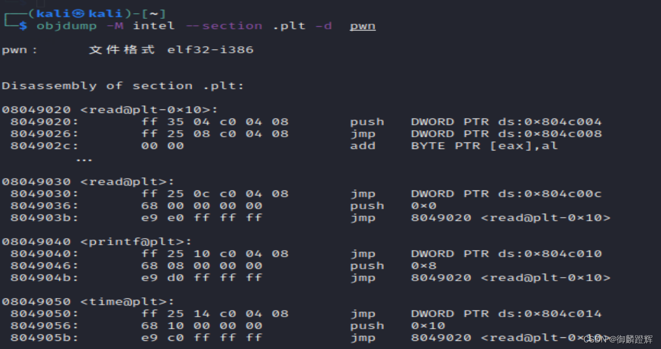 push指令把一个整数压入栈,该整数是PLT存根的标识符