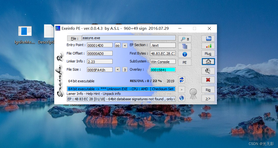 查壳也可以看这个文件是什么类型计算机上面的可执行文件(32位机,64位机)