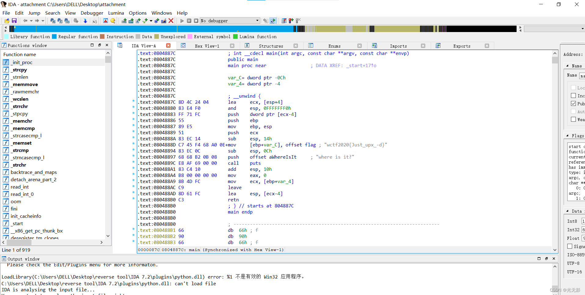 【摘要】 1.查壳编辑Detected UPX! packer - http://upx.sf.net -> try unpack with "upx.exe -d" from http://upx.sf.net检查到了UPX壳,并且知道是一个elf文件elf是Linux中的执行文件ELF(文件格式)_百度百科2.尝试用UPXshell脱壳 编辑发现版本不兼容,使用Kali linux脱壳...