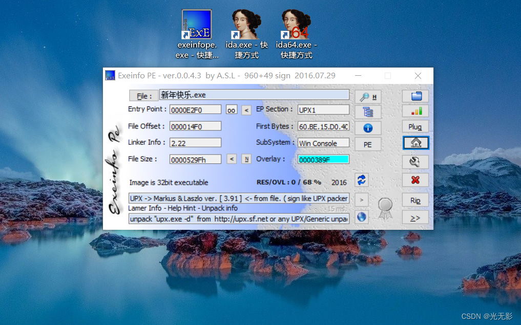 UPX是一种经典的壳,越是有名的壳越有各种现成的破解工具