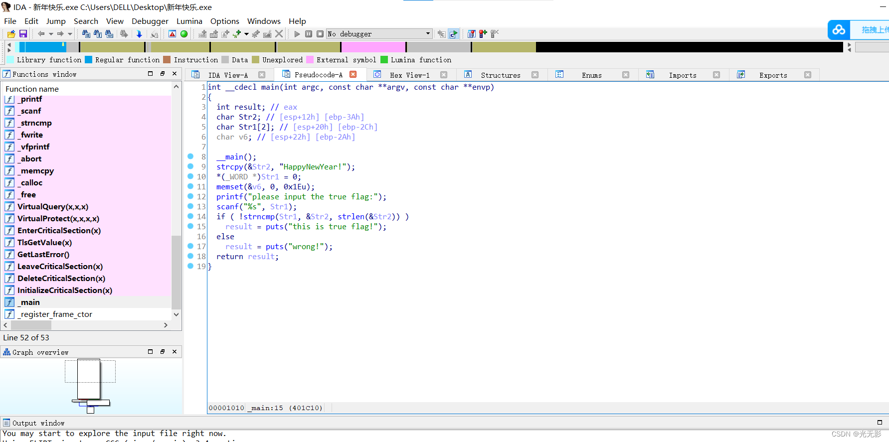 观察主函数,可以知道输入的字符串是Str1,Str1和Str2相等,就输出this is the true flag!