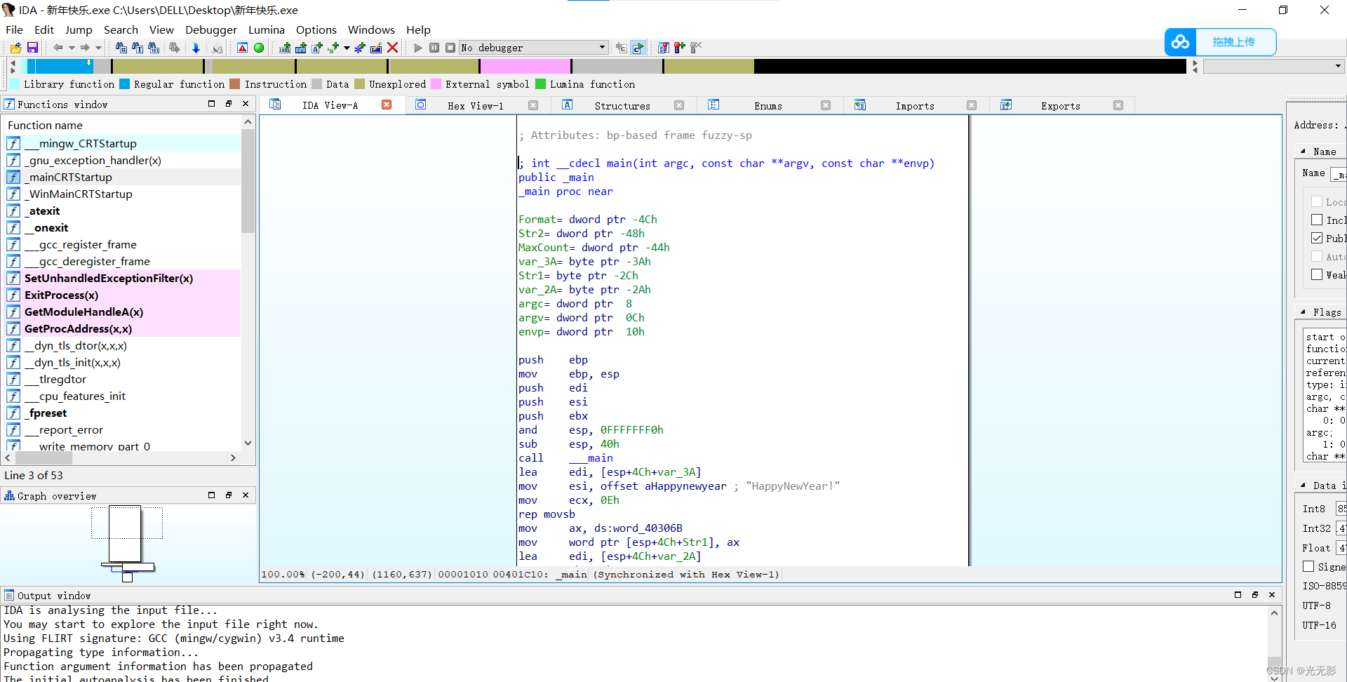 点击Go,成功脱壳,重新将这个可执行问阿金拖入32位IDA