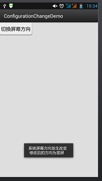 该方法用于监听系统设置的更改,是基于回调的时间处理方法,当系统的设置发生改变时就会自动触发;但是要注意一点,使用下面的方法监控的话,targetSdkVersion属性最高只能设置为12,高于12的话,该方法不会被激发!这里写个横竖屏切换的例子给大家参考参考,其他的可自行百度。