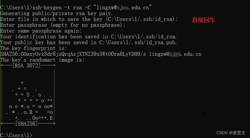 按照提示完成三次回车,即可生成ssh key。