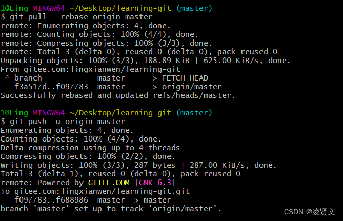 此时,可在本地库上使用命令 git remote add把它和 gitee 的远程库关联,如下