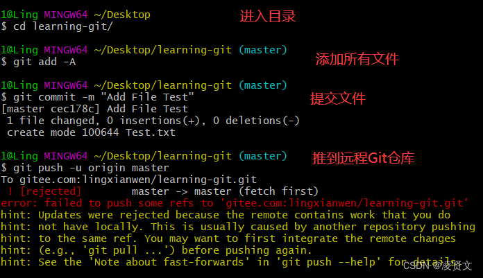打开git,执行git的add、commit、push命令,即可将本地文件上传到远程仓库。