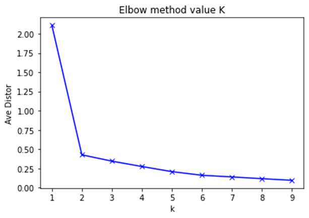 - 绘制出k-average with cluster distance to centroid的图表,观察随着k值的增加,曲线的下降情况,当曲线不再“急剧”下降时,就是合适的k值