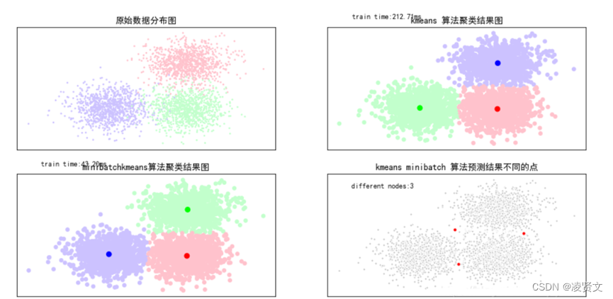 Mini Batch K-means算法是K-means算法的一种优化变种,采用小规模的数据子集(每次训练使用的数据集是在训练算法的时候随机抽取的数据子集)减少计算时间,同时试图优化目标函数;Mini Batch K-means算法可以减少K-means算法的收敛时间,而且产生的结果效果只是略差于标准K-means算法