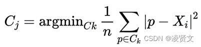 其中p是某个簇Ck中的样本。即,用Xi到某个簇所有样本平均距离作为衡量该点到该簇的距离后,选择离Xi最近的一个簇作为最近簇。