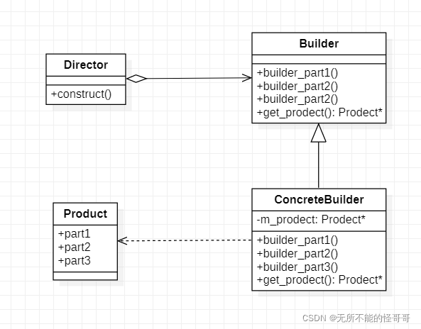 Aggregation,聚合关系表示整体和部分的关系,它是一种has-a的包含关系,而且整体和部分是可以分离的,即离开整体,部分也能存在。聚合关系是关联关系的一种,它是一种更强的关联关系。聚合关系在C++中的表现也是成员变量的方式,但是和关联关系不同的是,关联关系中的两个类是相互独立的,而聚合关系中的两个类是整体与部分的关系,一个类是另一个类的一部分。在类图中,空心菱形在代表整体的类那侧,另一侧为代表部分的类。