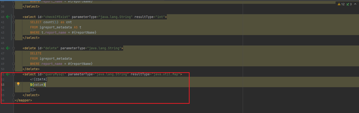 之后往上追到dao层,com/lyl/igreport/dao/mysql/IgReportDao.java,可以发现