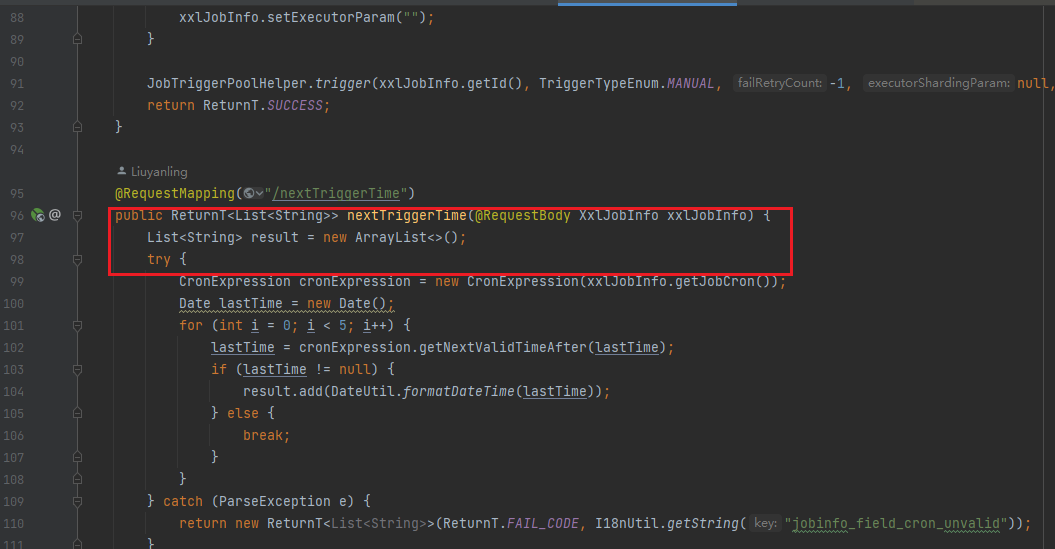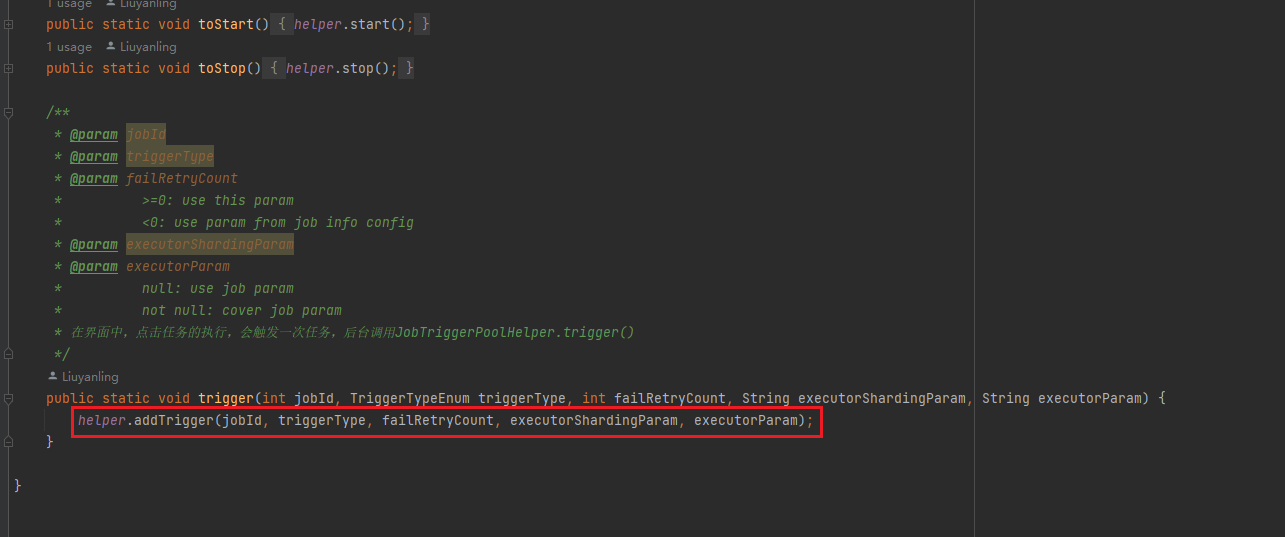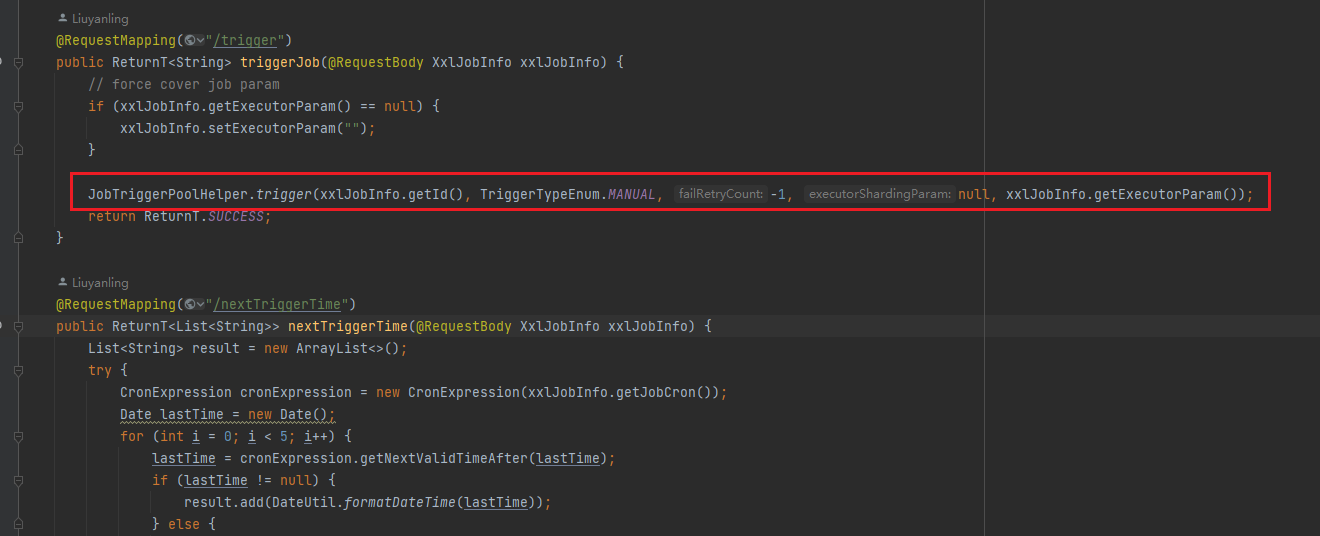添加之后,在com/lyl/igreport/web/controller/JobInfoController.java triggerJob()方法