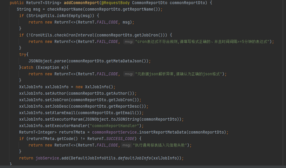 addCommonReport()方法接收了一个CommonReportDto类作为参数传入,而传入之后
