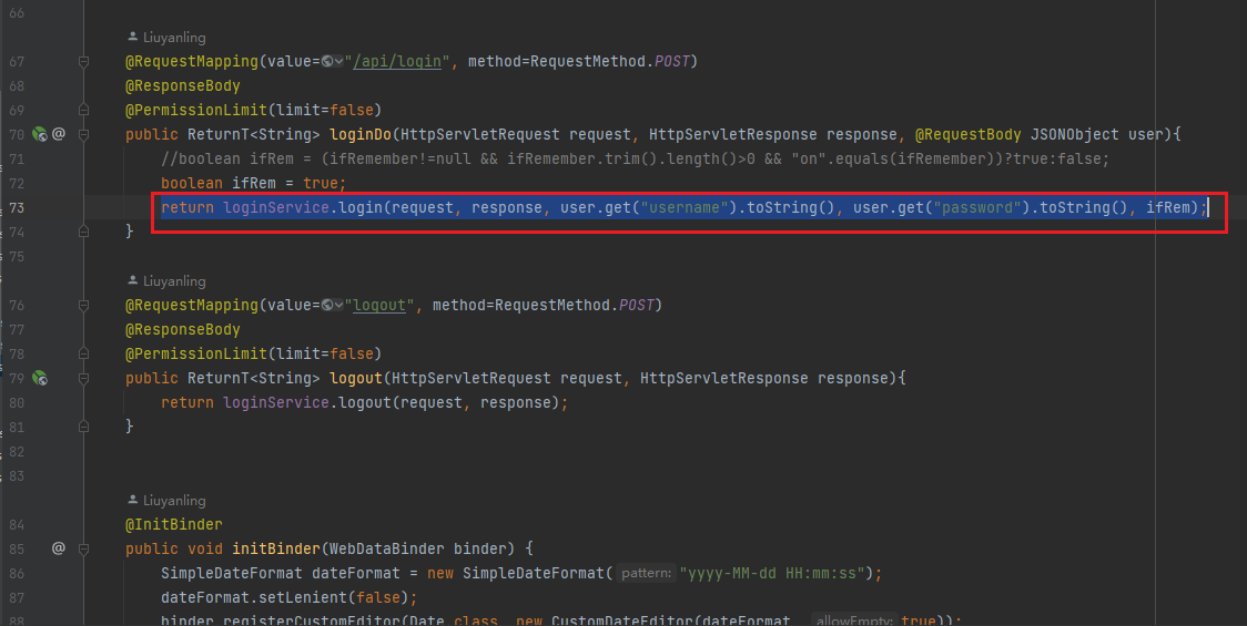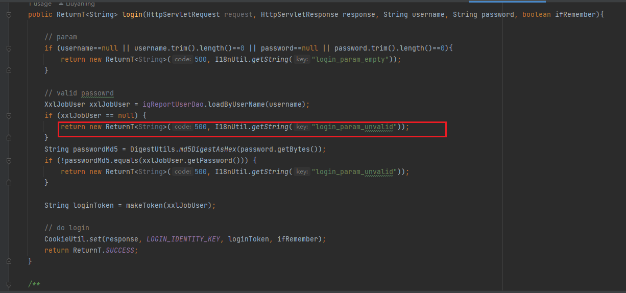 在 LoginService.login()方法中,可以看到没有对用户名做校验,而是稍后对密码进行了