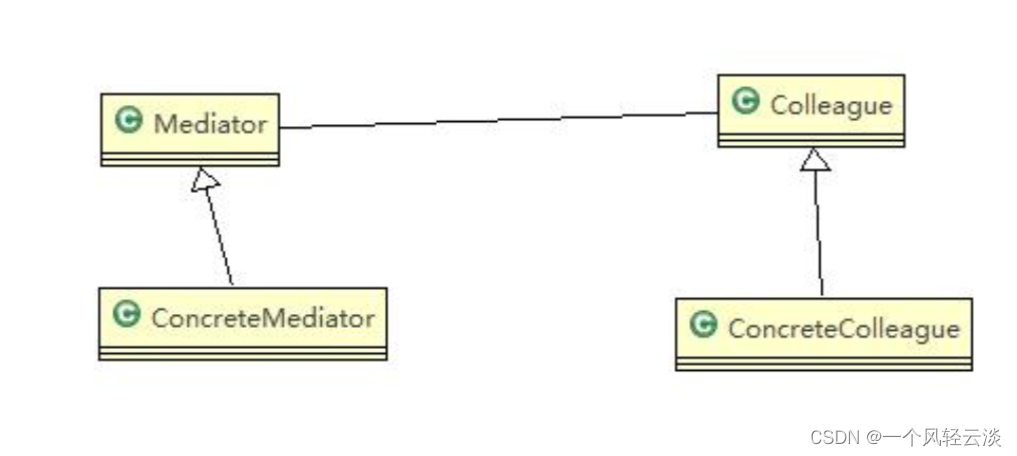 1) Mediator 就是抽象中介者,定义了同事对象到中介者对象的接口