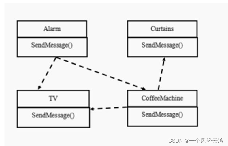 4) 当系统增加一个新的电器对象时,或者执行流程改变时,代码的可维护性、扩展性都不理想 考虑中介者模式