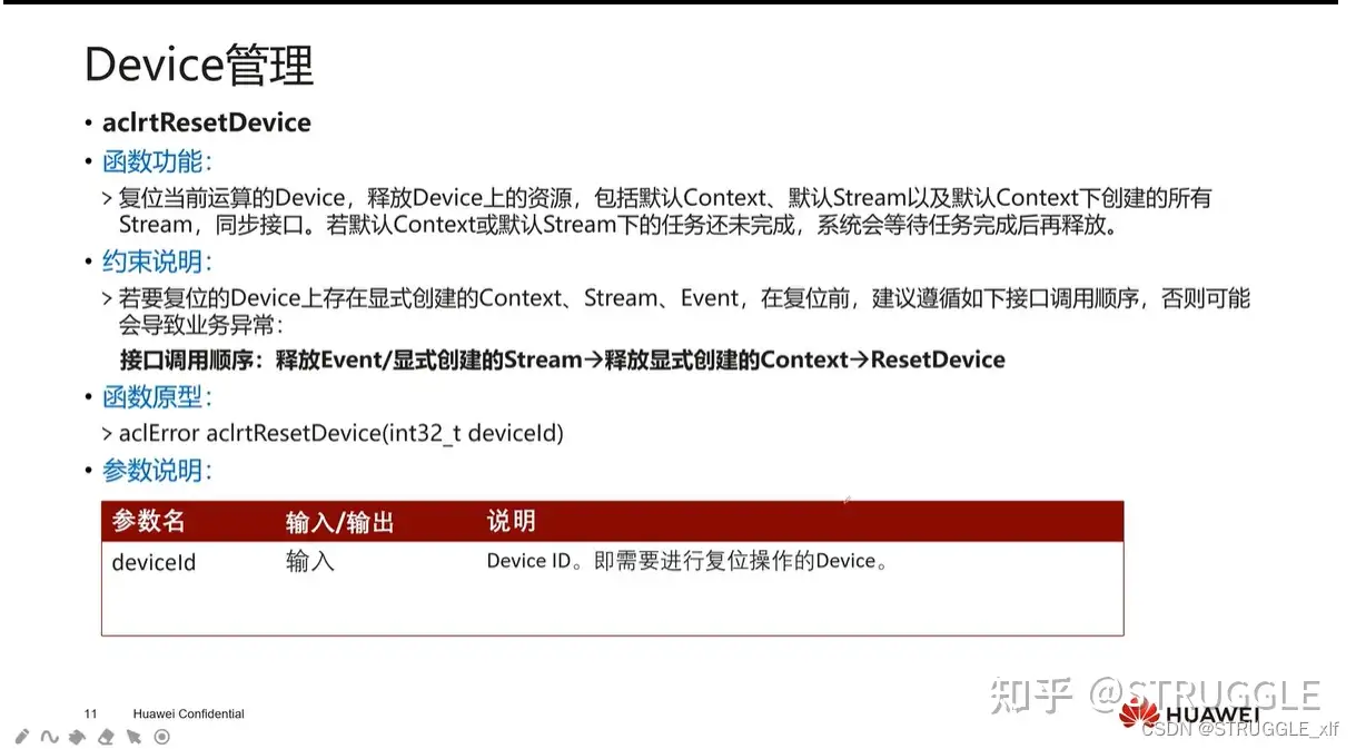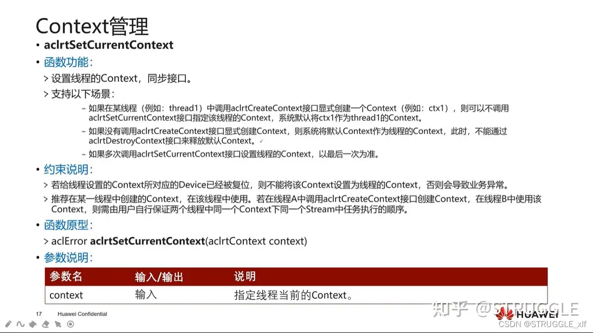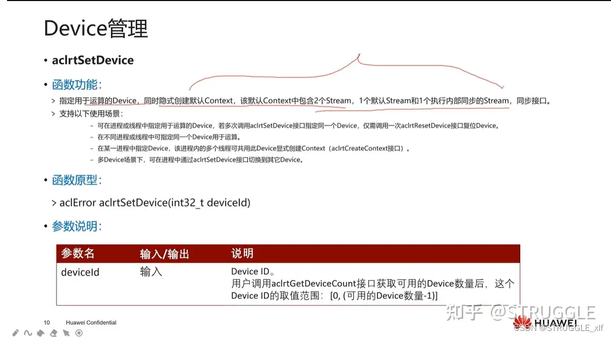 指定用于计算的 Device aclrtSetDevice ■调用 aclrtCreateContext 接口显式创建 Context ,调用 aclrtCreateStream 接口显式创建 Stream 。 .不显式创建 Context 和 Stream ,系统会使用默认 Context 、默认 Stream ,该默认 Context 、默认 Stream 是在调用 aclrtSetDevice 接口时隐式创建的。默认 Context 、默认 Stream 作为接口入参时,直接传 NULL 。