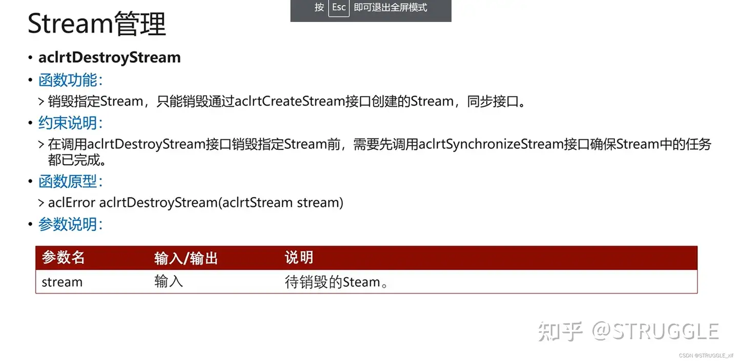 ·原理介绍: >在 ACL 中, Stream 是一个任务队列,应用程序通过 Stream 来管理任务的并行,一个 Stream 内部的任务保序执行,即 Stream 根据发送过来的任务依次执行;不同 Stream 中的任务并行执行。一个默认 Context 下会挂一个默认 Stream ,如果不显式创建 Stream ,可使用默认 Stream 。