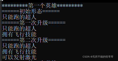 假设我们要设计一个游戏角色Hero,它最初只有跑步的技能,但是通过升级可以完成功能扩充,比如飞行,发射激光等。