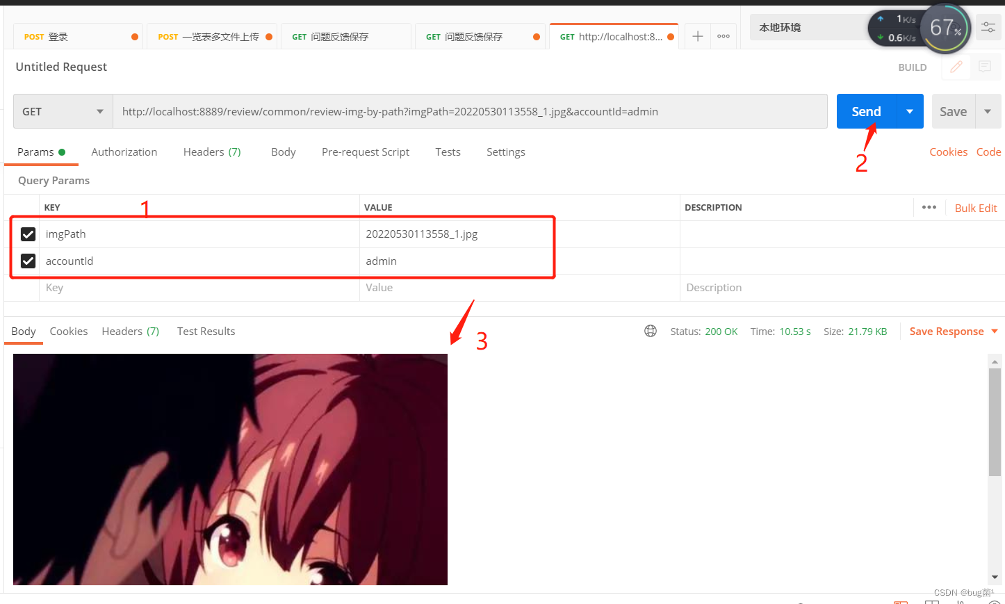 这里我提供两种预览方式,一是通过postman测试接口进行图片预览,postman也是支持在线预览功能。