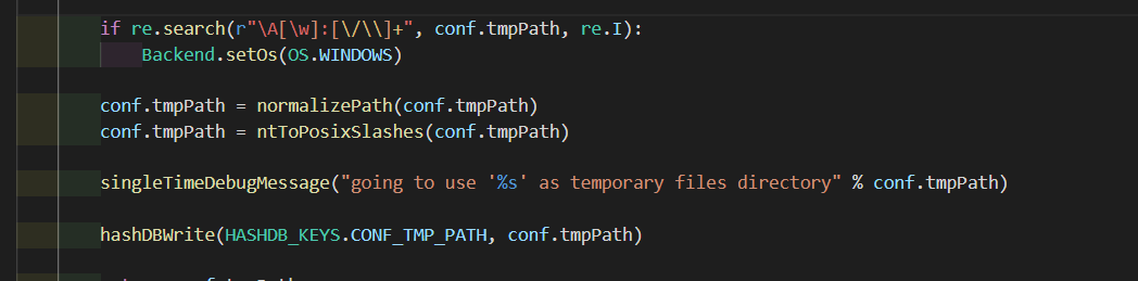 然后就是对临时路径字符串做一些处理,包括将\变成\\等,以适用不同的后端数据库