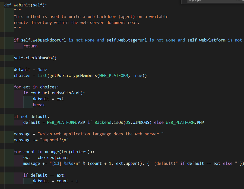 如果两者都不满足,但是后端数据库为mysql的时候,会令web=True,后续会使用一个web的shell来进行后续操作