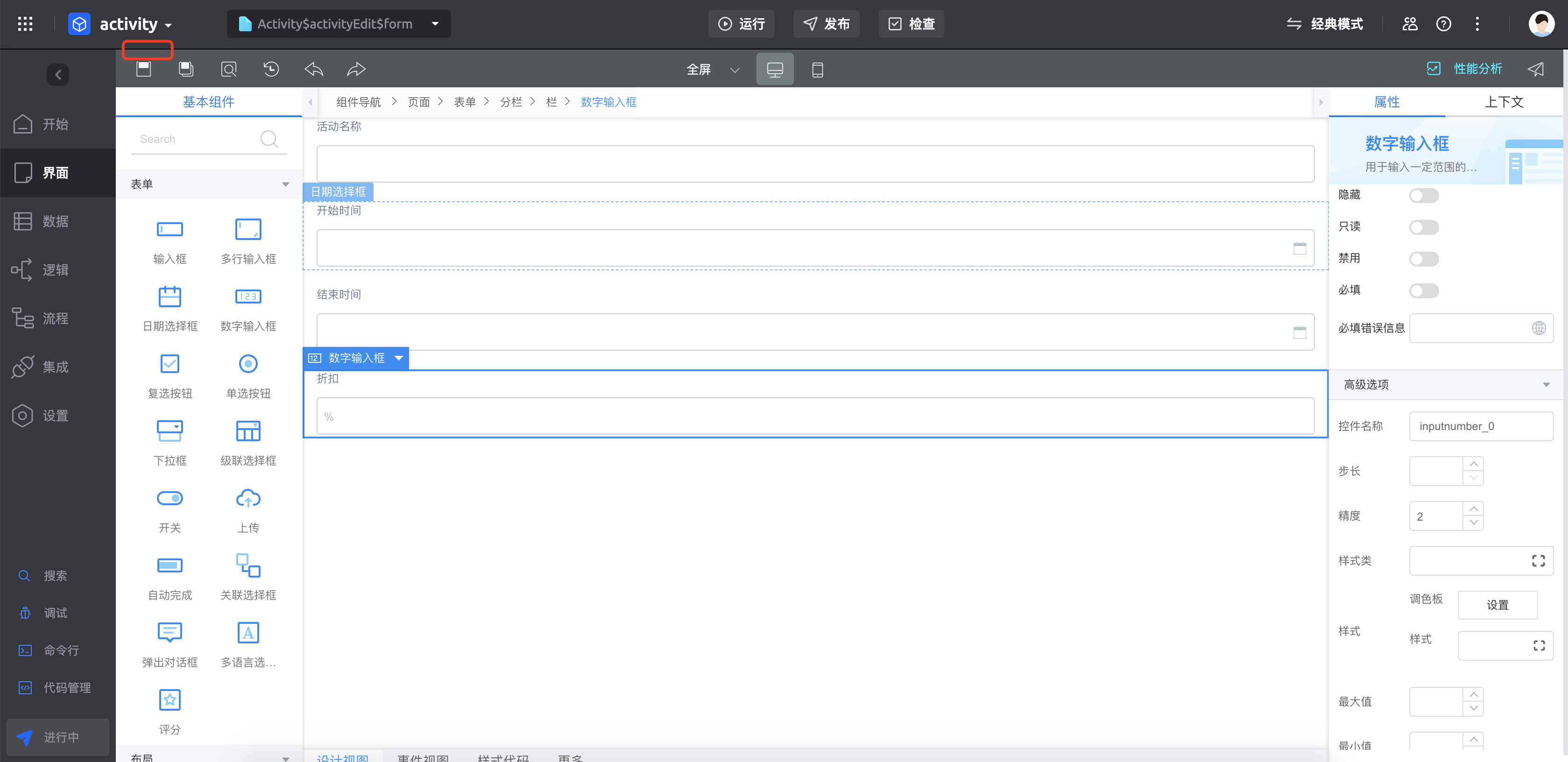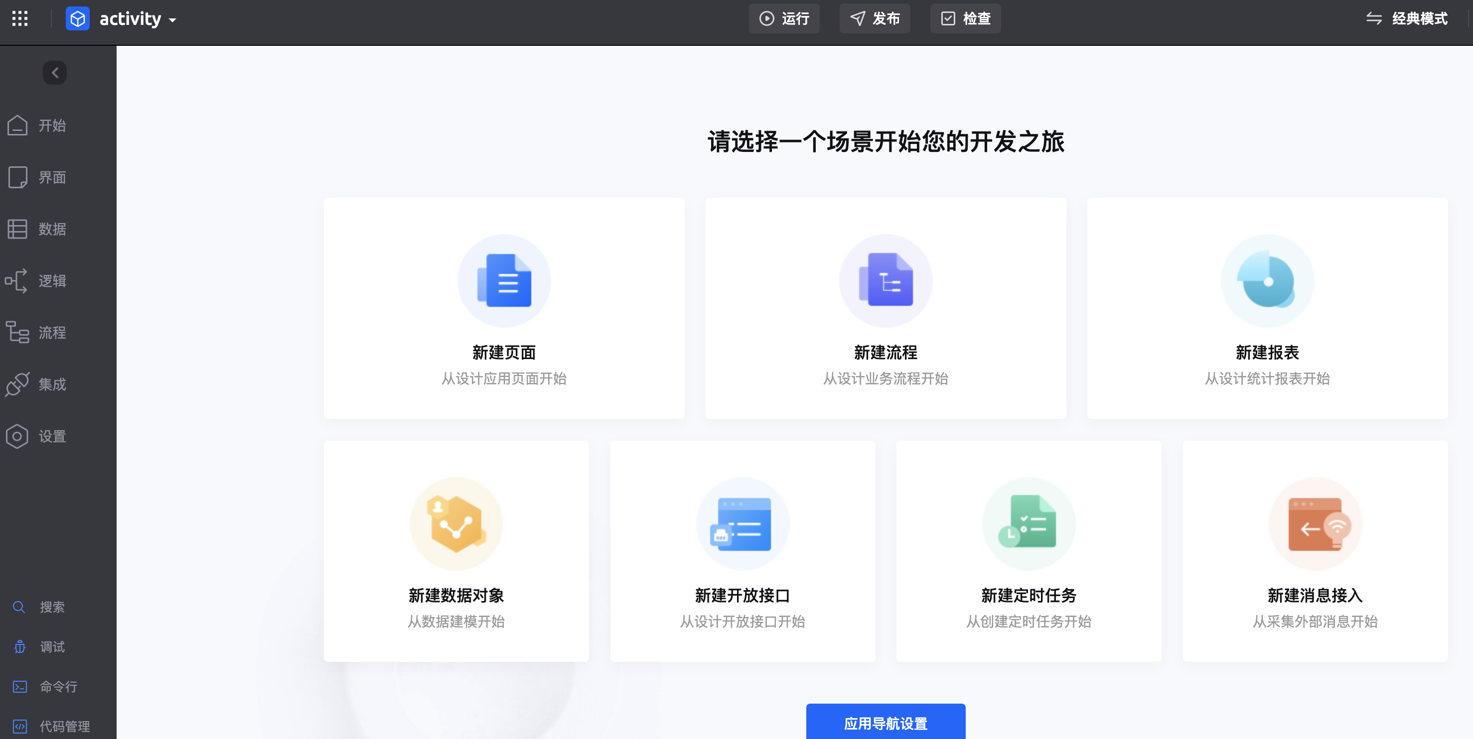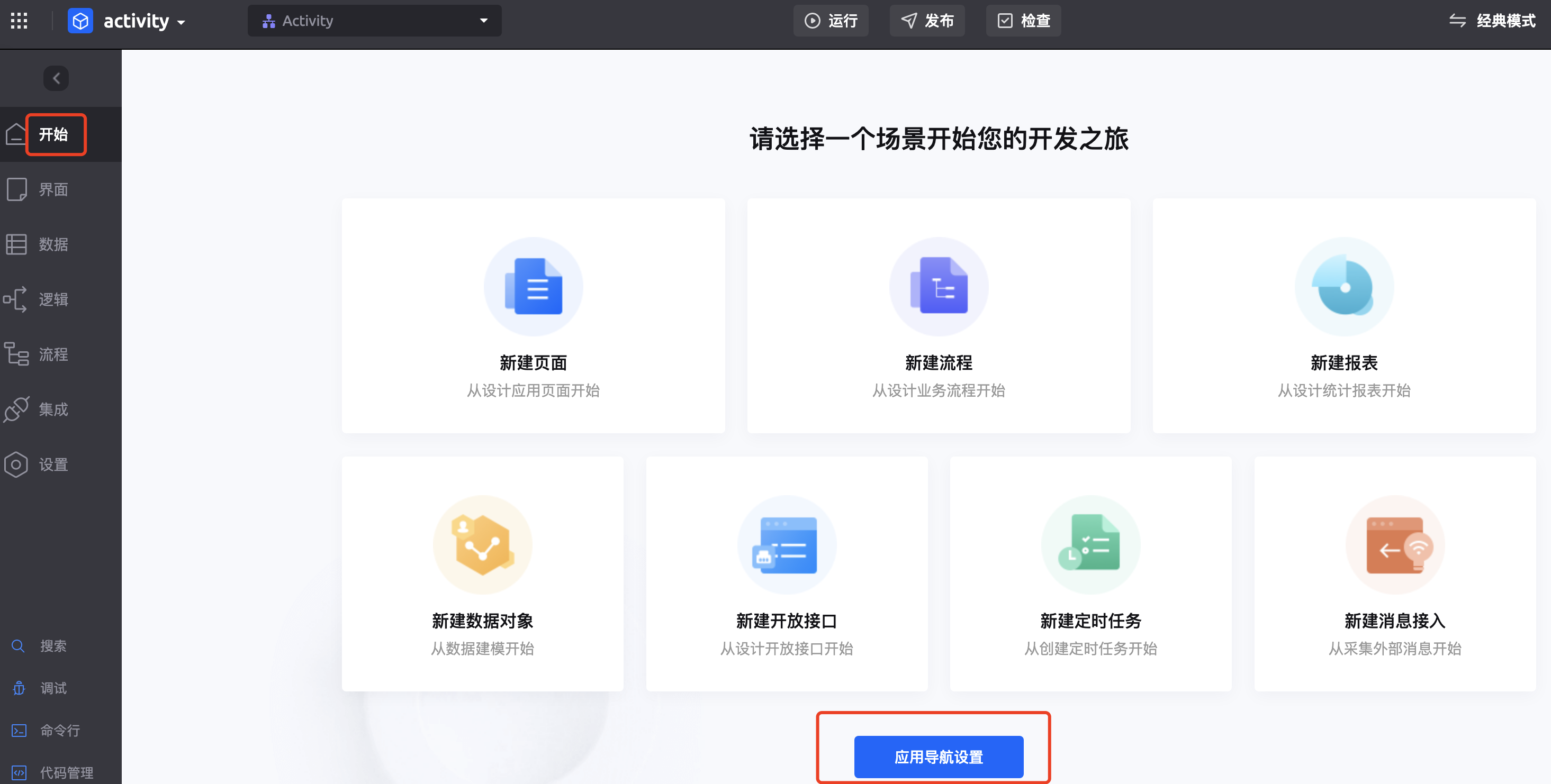 4、单击“运行 > 立即运行”,可预览「活动管理」应用。