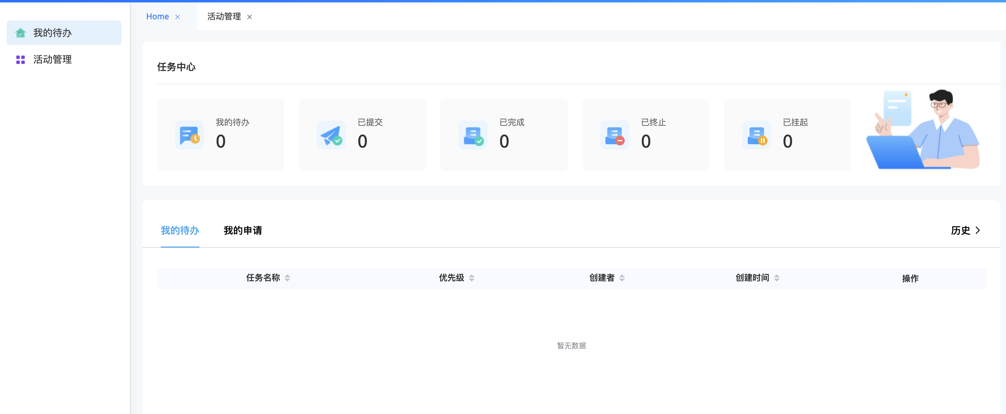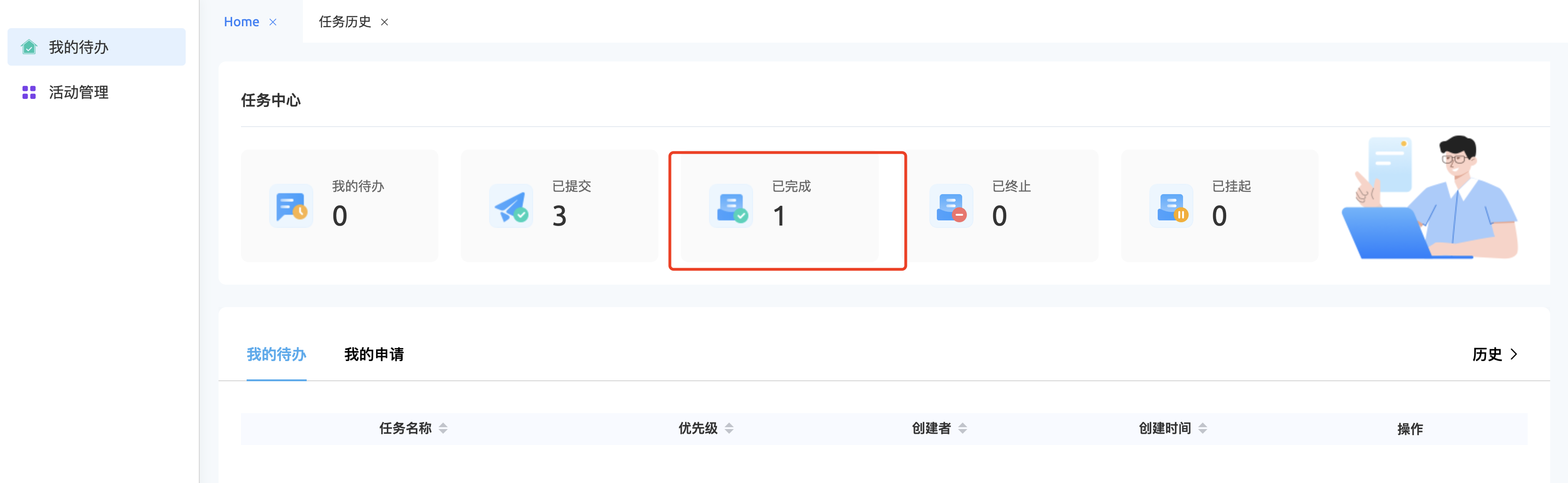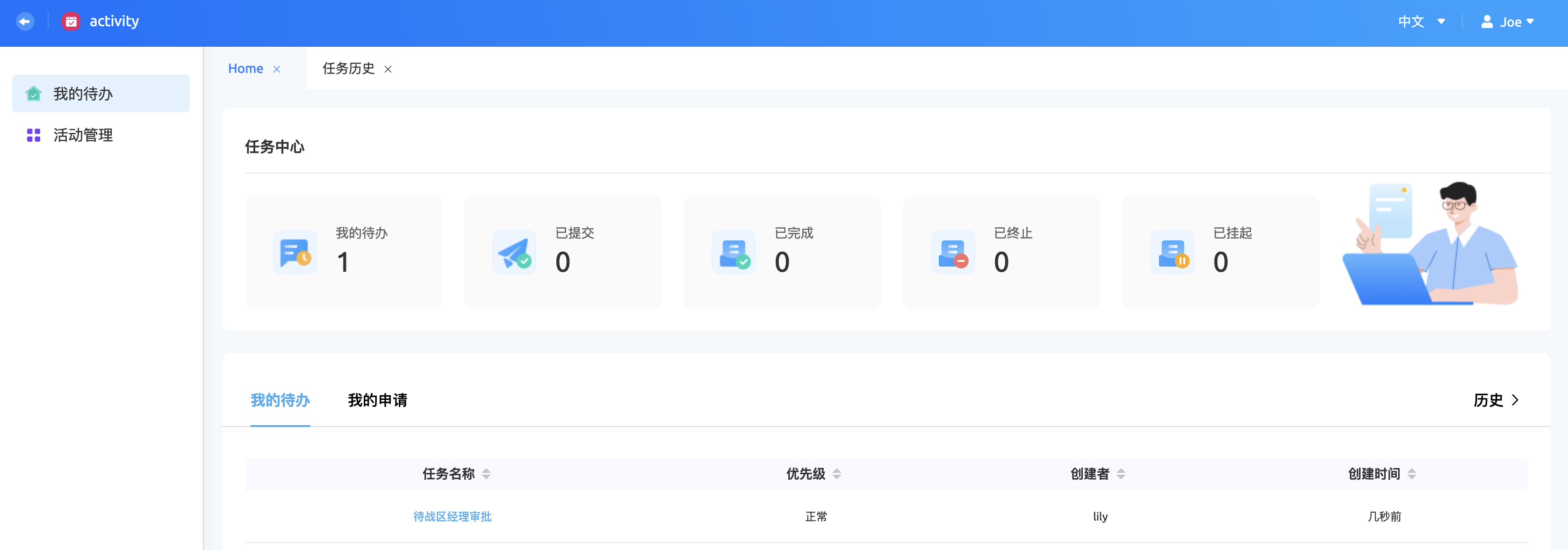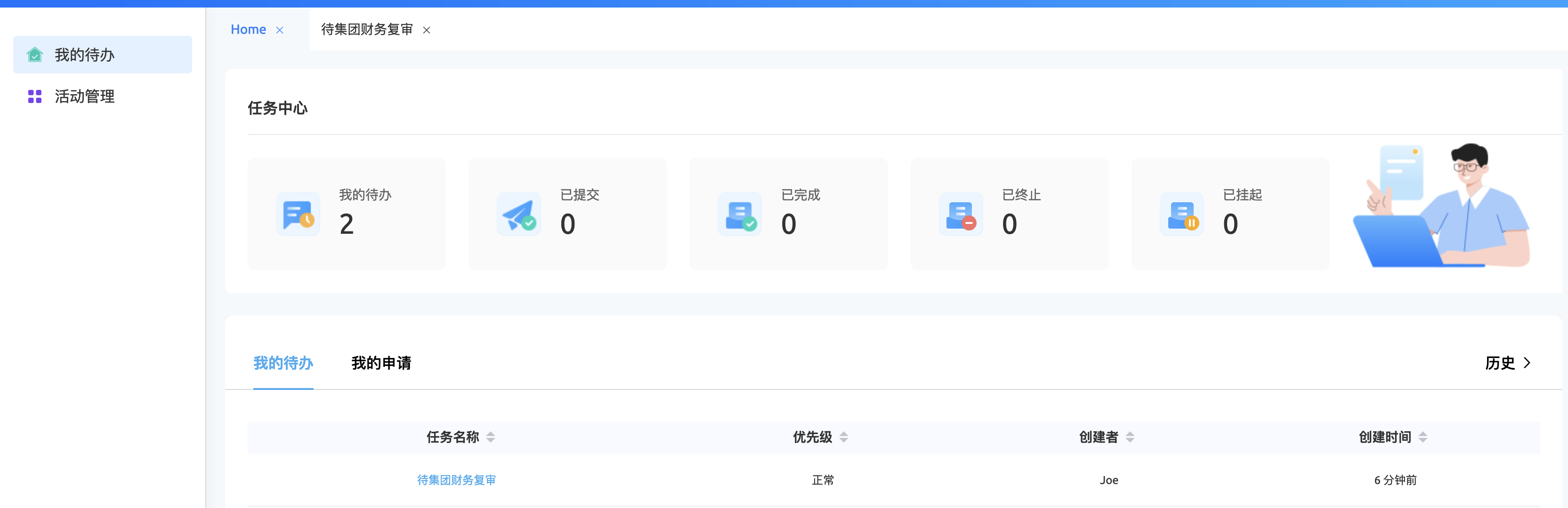 4、活动提交成功之后,仍然在当前页面,跳转到我的待办比较好。提交之后主要是等后续流程。