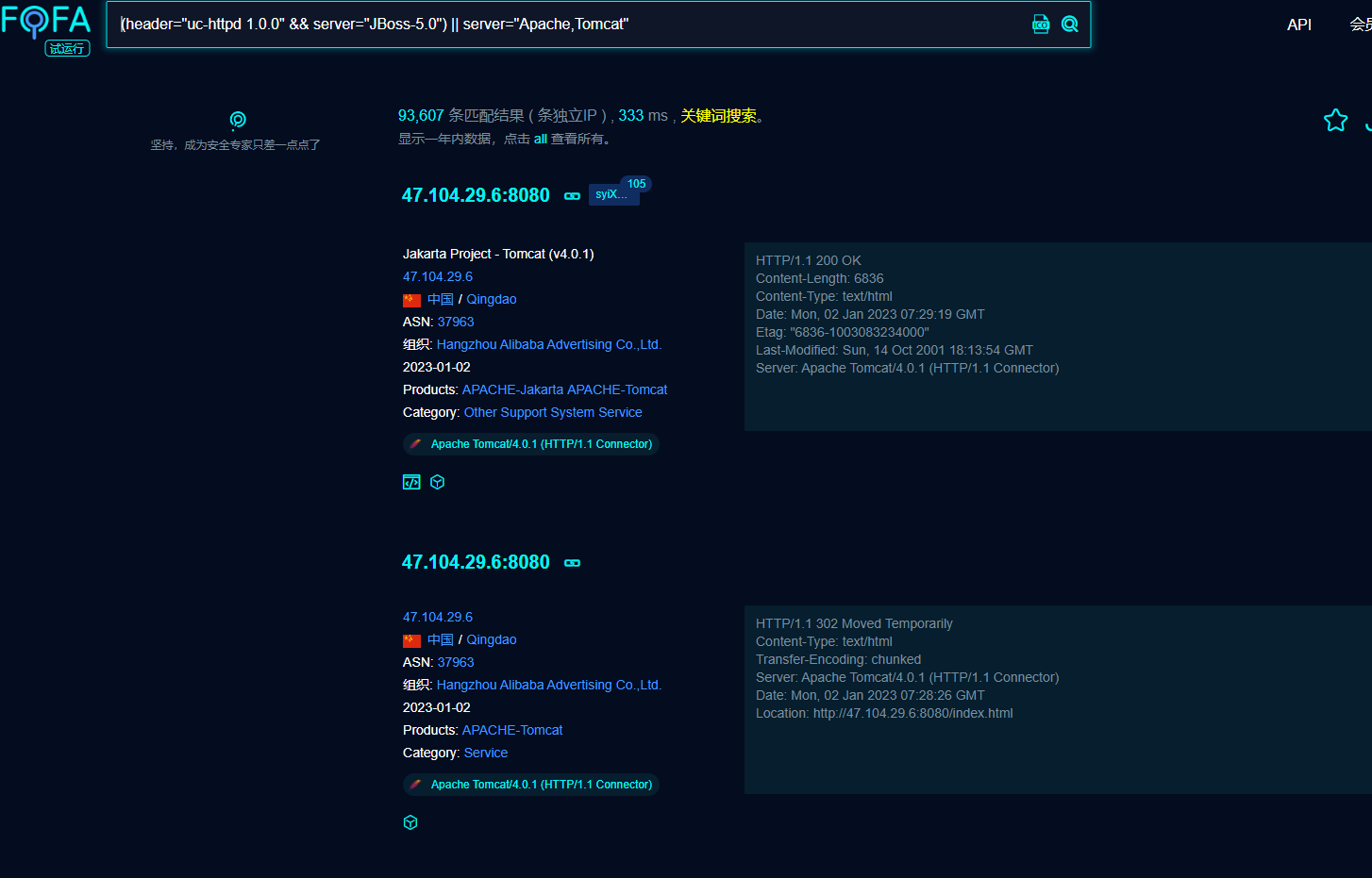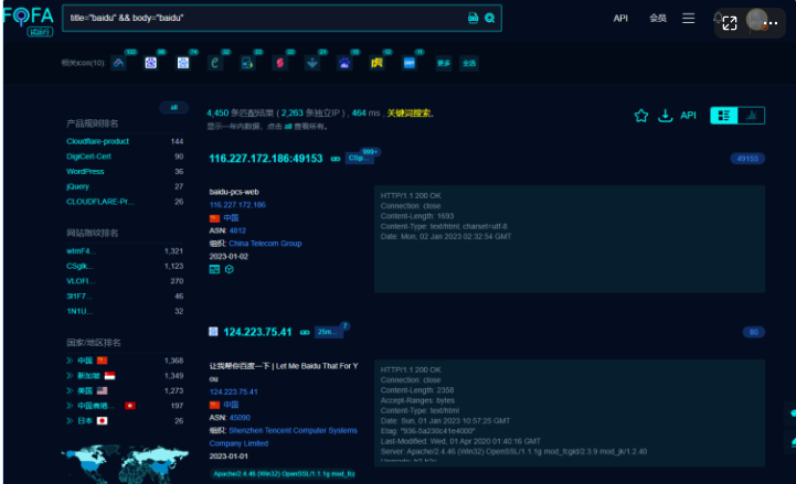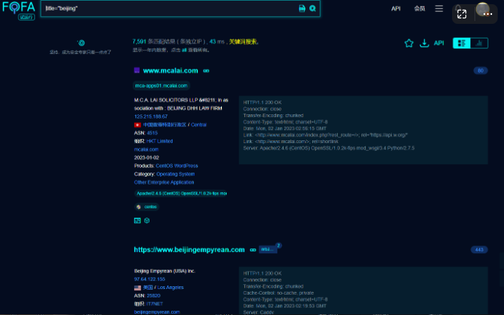 FOFA 是白帽汇推出的一款网络空间资产搜索引擎。它能够帮助用户迅速进行网络资产匹配、加快后续工作进程。例如进行漏洞影响范围分析、应用分布统计、应用流行度排名统计等。