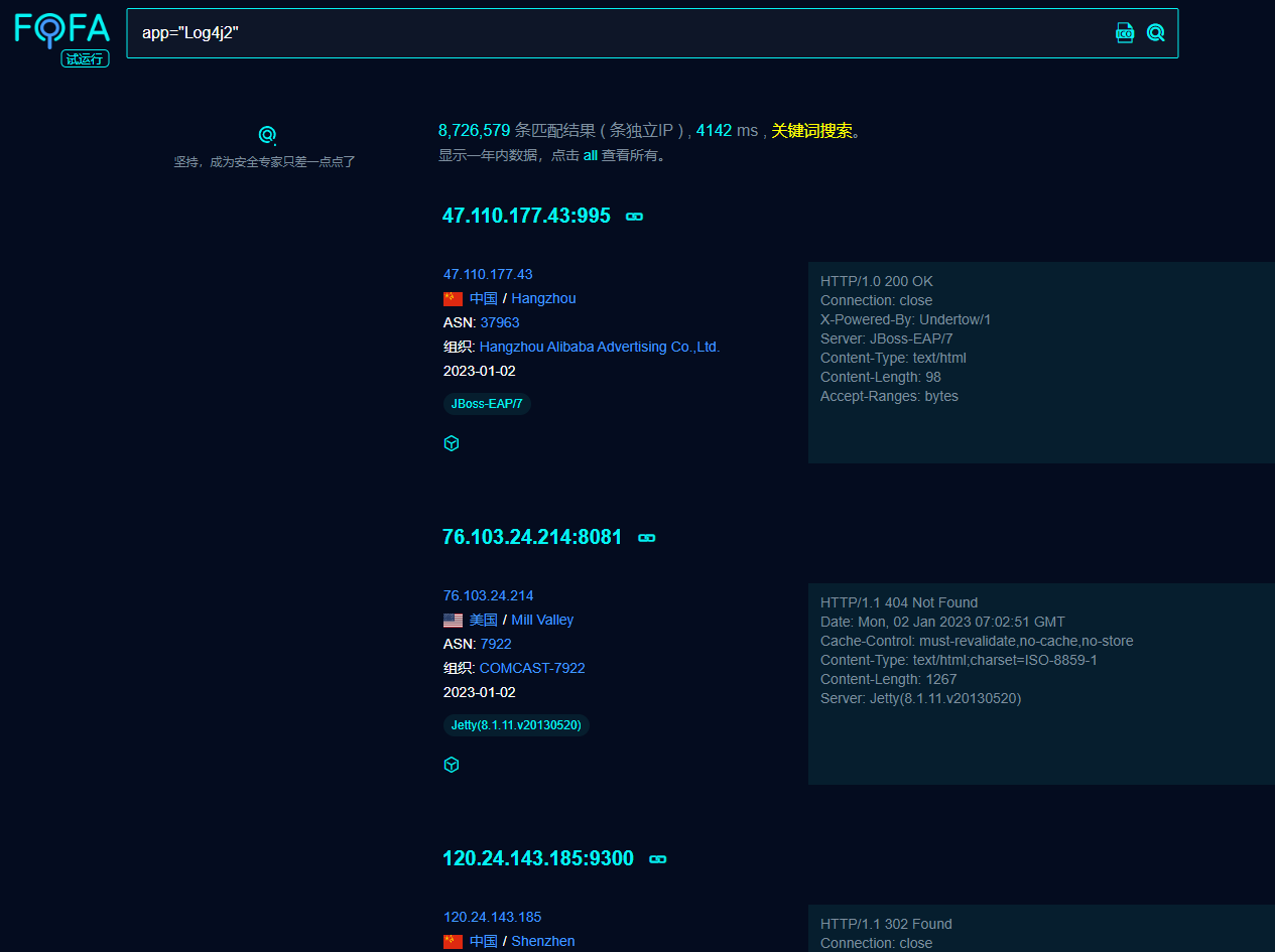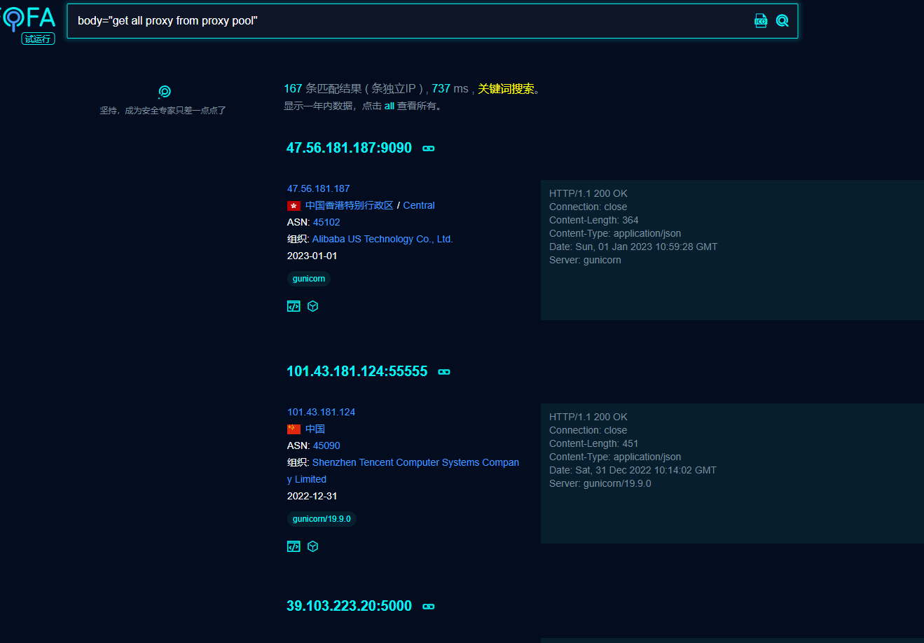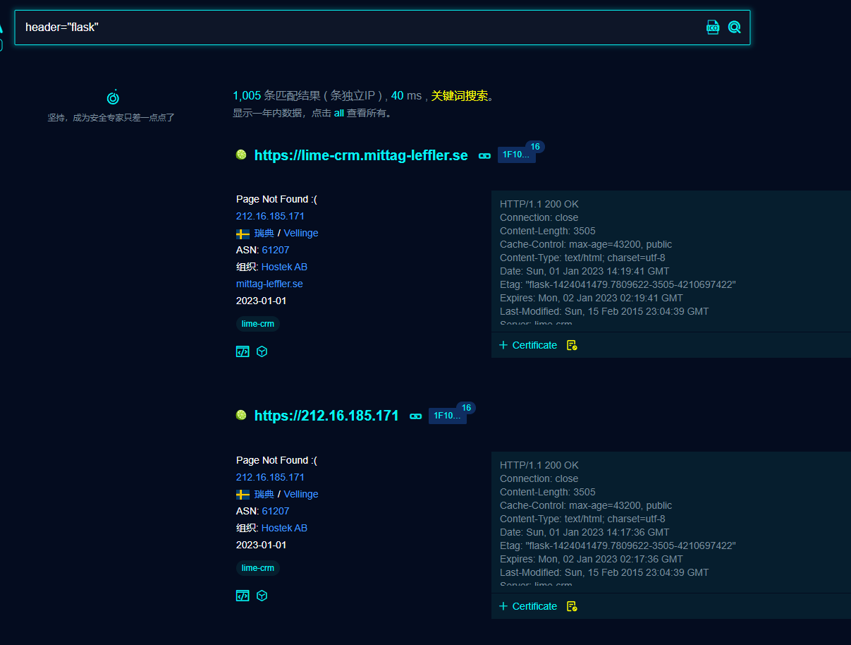 搜索HTTP响应头中含有“flask”关键词的网站和IP地址
