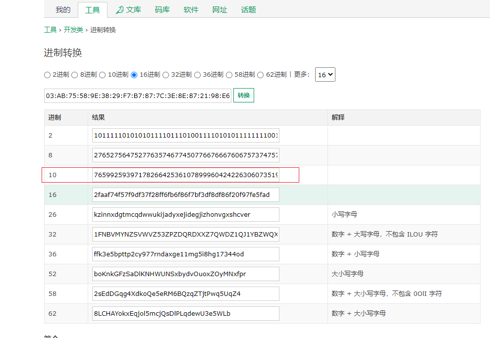 然后这一串字符是16进制字符,我们需要将其调整为10进制。