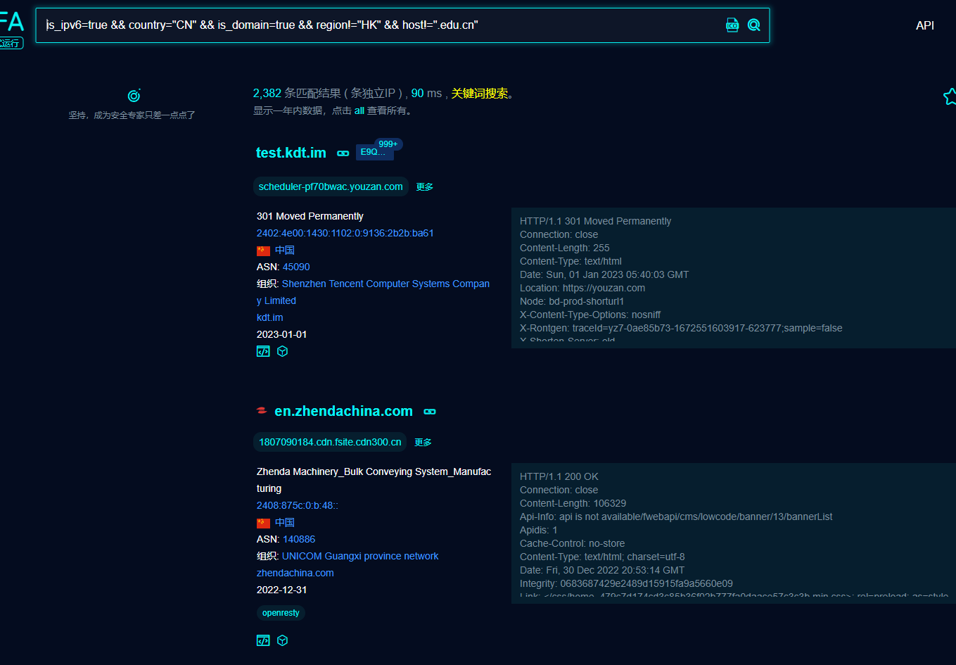 搜索某域名IPV6资产(排除干扰、蜜罐数据)