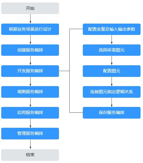 服务编排提供了图形化、拖拽式开发的能力,来看华为云官网的完整介绍: