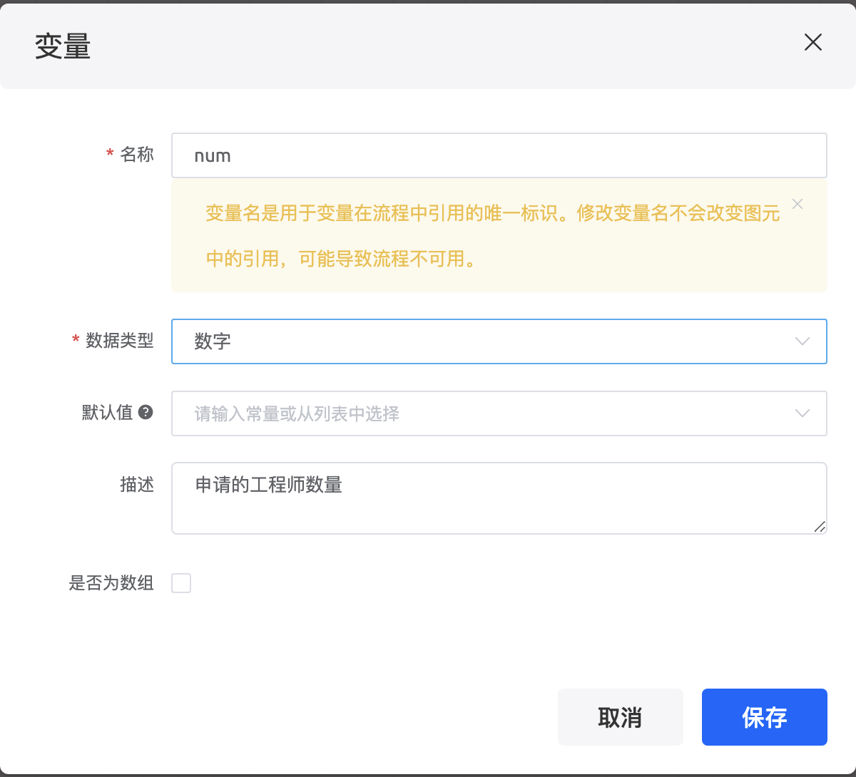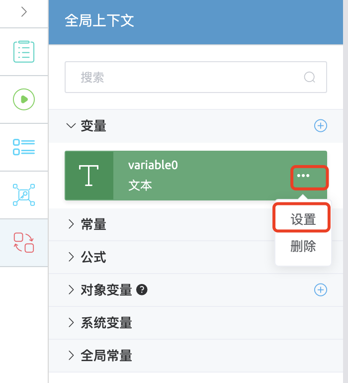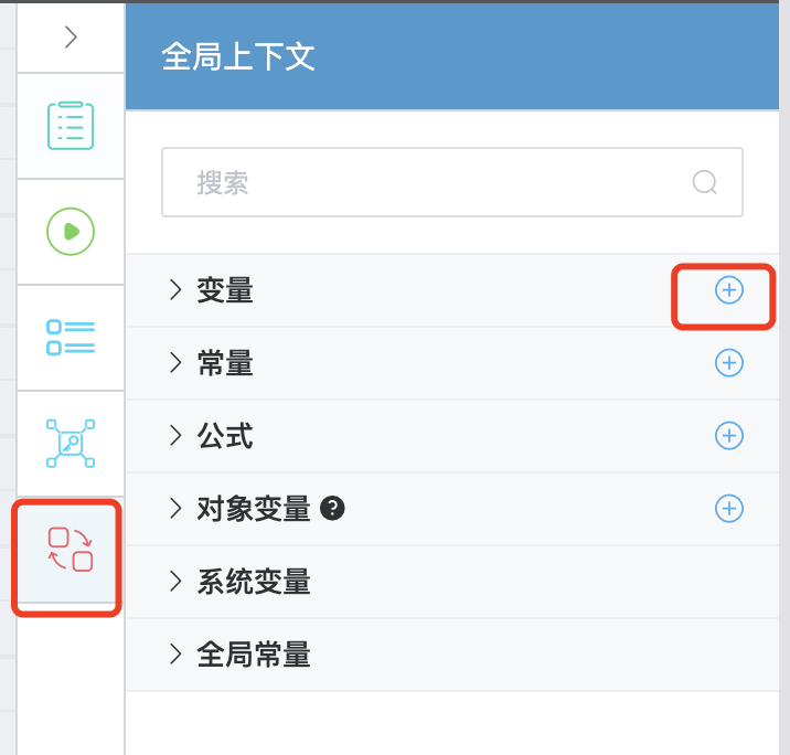 在全局上下文页面,单击「变量」后的「➕」,创建普通变量。