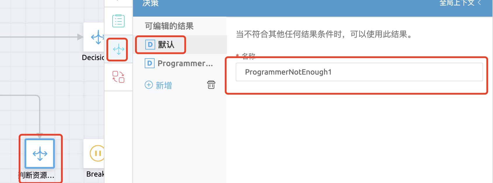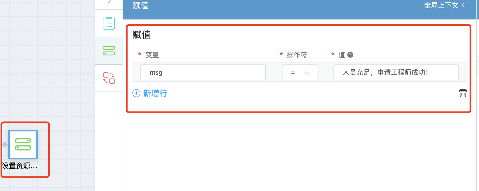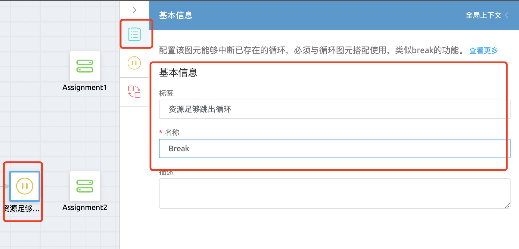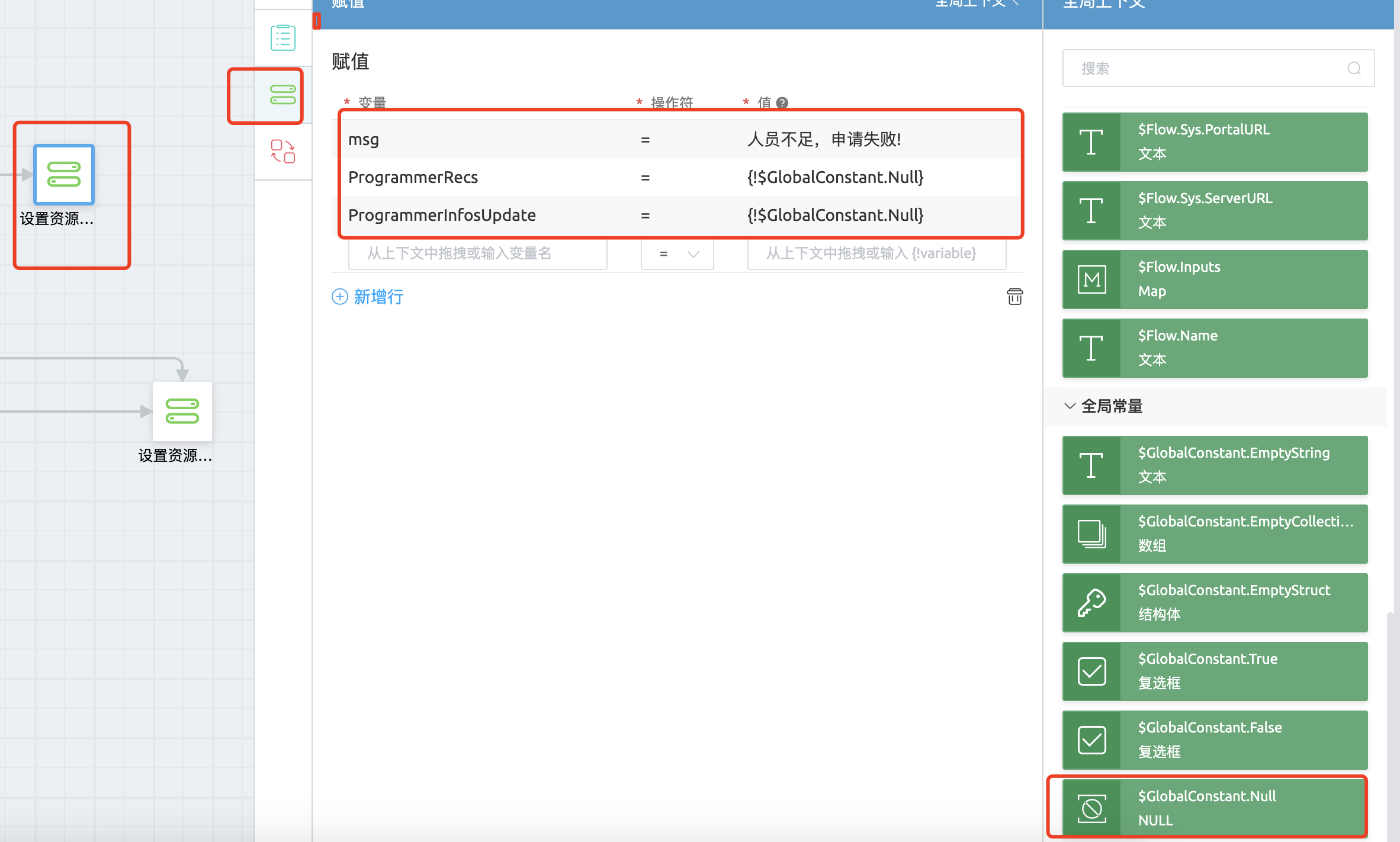 在服务编排编辑器页面右侧,选择「交换」,展开全局上下文页面。